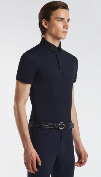 Made of a light bi-stretch technical material, the Men's Piquet Polo is an essential and classic addition to your all-season equestrian wardrobe. The refined lines create a flattering and tailored silhouette. Its quick drying properties and special technical fabric make it comfortable to wear even on the warmest days. Great for the barn or for everyday wear.