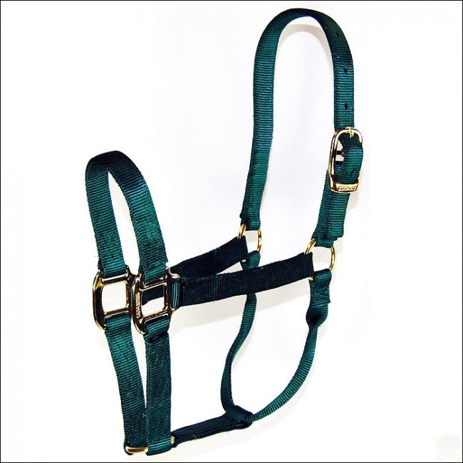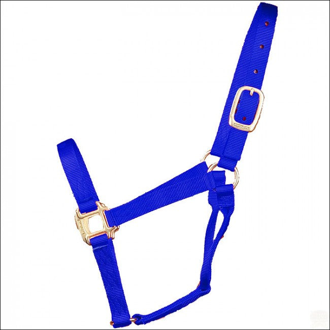 The Hamilton Nylon Halter is made using only the highest quality durable nylon webbing, thread, and hardware to ensure practical durability for years to come. Hardware includes solid brass buckle square and snap along with brass-plated rings.