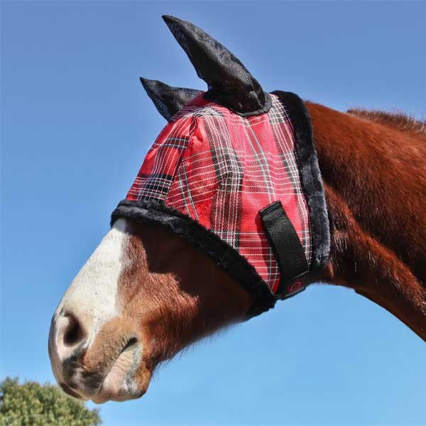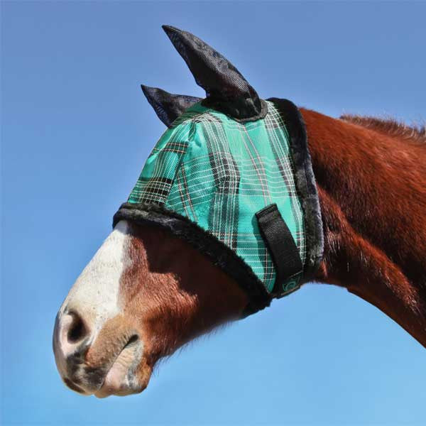 Our fly mask with fleece trim is made with the strongest material on the market today – Textilene® and is the absolute best way to protect your horse. Material is specially formulated to withstand fading, soiling, wear and tear, and is mildew resistant. This fly mask not only shields your horse from biting insetcts, but also shades with 73% UV protection. Features fleece trim for added comfort and a new design which allows both ears and the forelock to come through the top of the mask. Allows full visibility with maximum protection to the facial and eye areas, helps aid in healing, and with the Original Double Locking System, this mask is nearly impossible to take off!