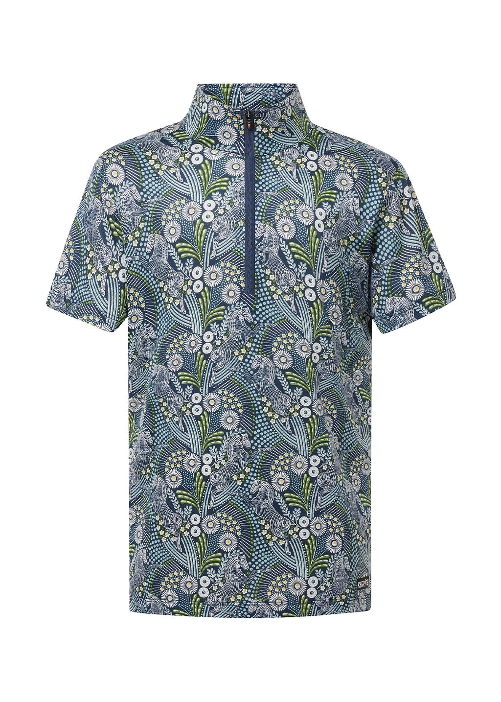 Five fun prints set horse-crazy kids free to wear their heart horses on their sleeves in this featherweight top that works to cover, wick, and cool. While Ice Fil® helps to cool skin’s surface temp by up to five degrees, the patterns hide the inevitable dirt that comes with long summer days. Zip adds ventilation and adjustability.