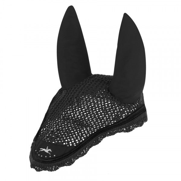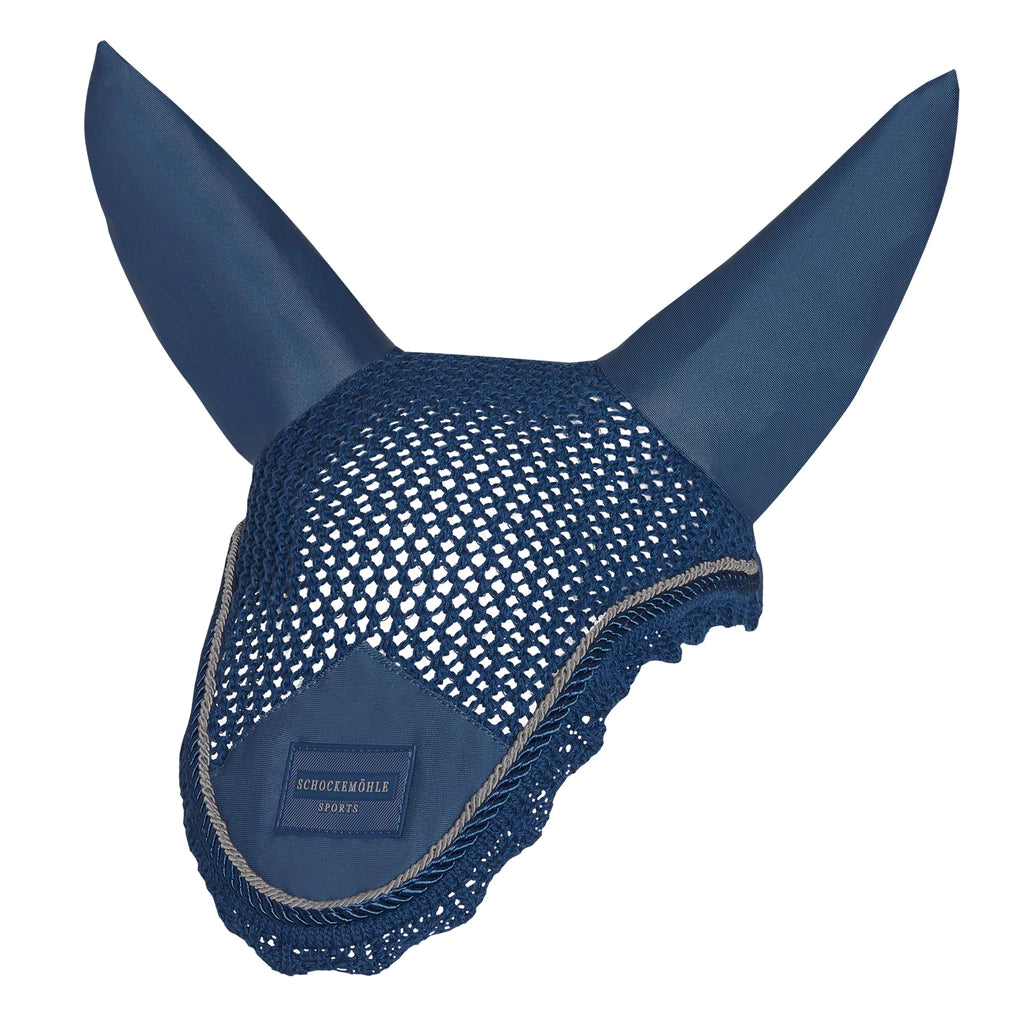This stylish Schockemöhle Fly Veil fits neatly under your bridle to keep insects out of your horse’s ears. It pairs a classic crocheted bonnet with elastic fabric ears. The crocheted edge is trimmed with double cording and a rubber brand patch accents the front side.