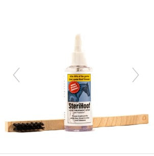 Proven to effectively treat thrush, white line, hoof rot and other hoof fungus. Powerful formula ideal for fighting the sources of painful hoof infections. Bottle features an easy-to-use applicator brush to reach deep down into crevices where germs can hide. Clinically proven safe and effective. 360° sprayer.